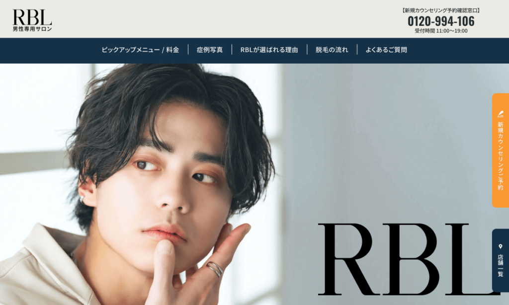 ROLAND Beauty Lounge(RBL)は、タレントで元ホストのROLAND氏がプロデュースする男性専用脱毛サロンです。全国38店舗で展開し、最新の脱毛機「LUMIX-A9X」を使用しています。