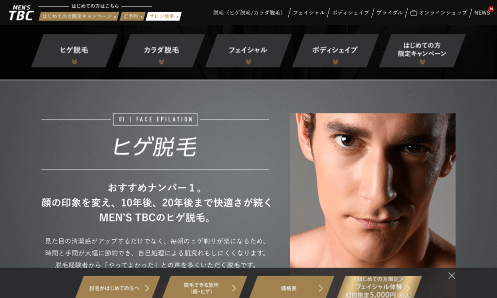 MEN’S TBCは、TBCグループが提供する男性向け専門脱毛サロンです。