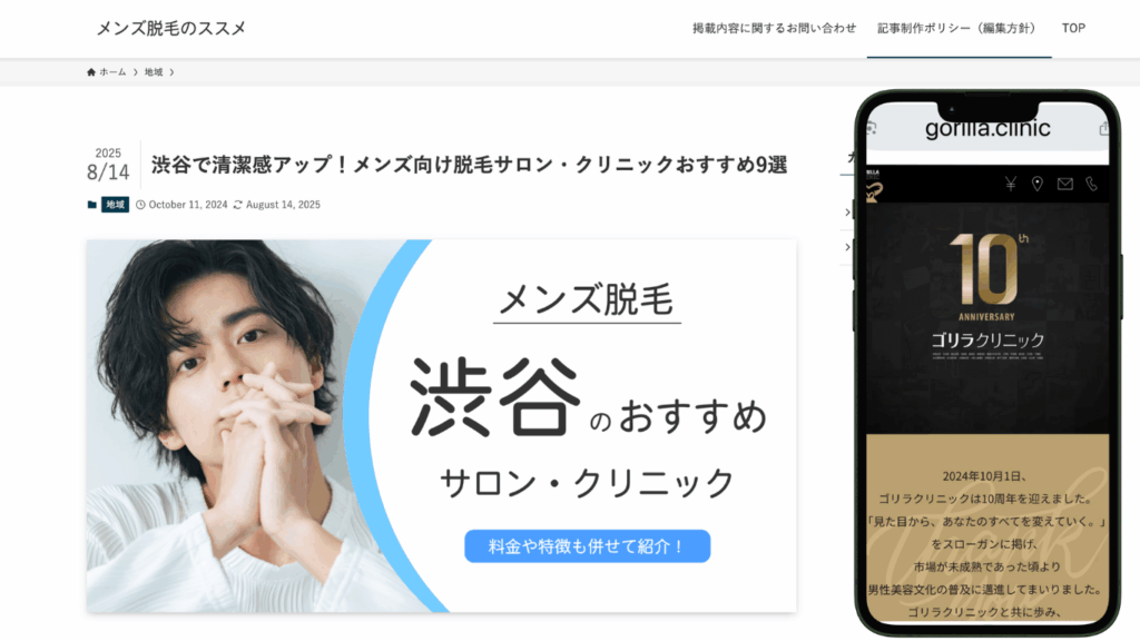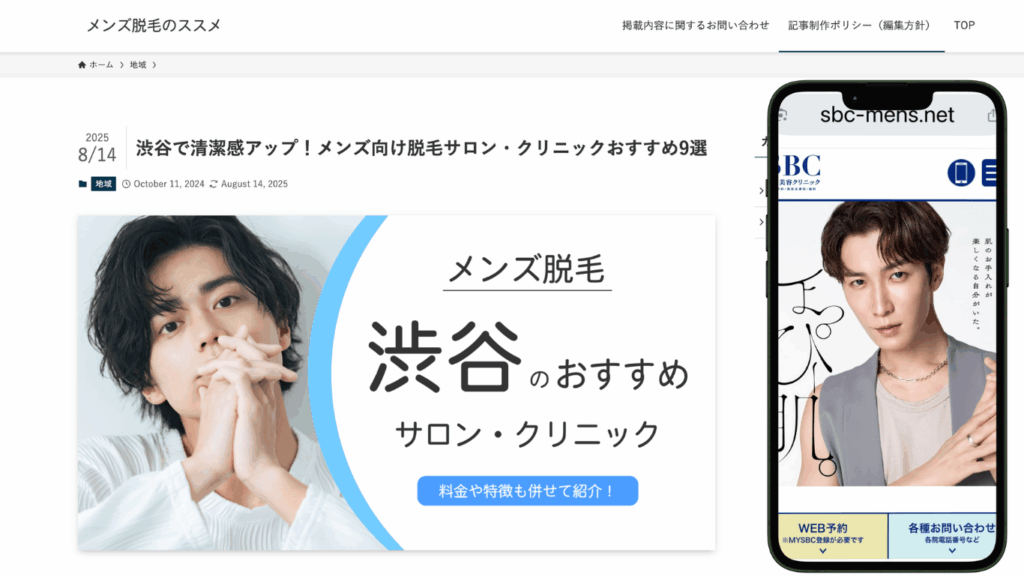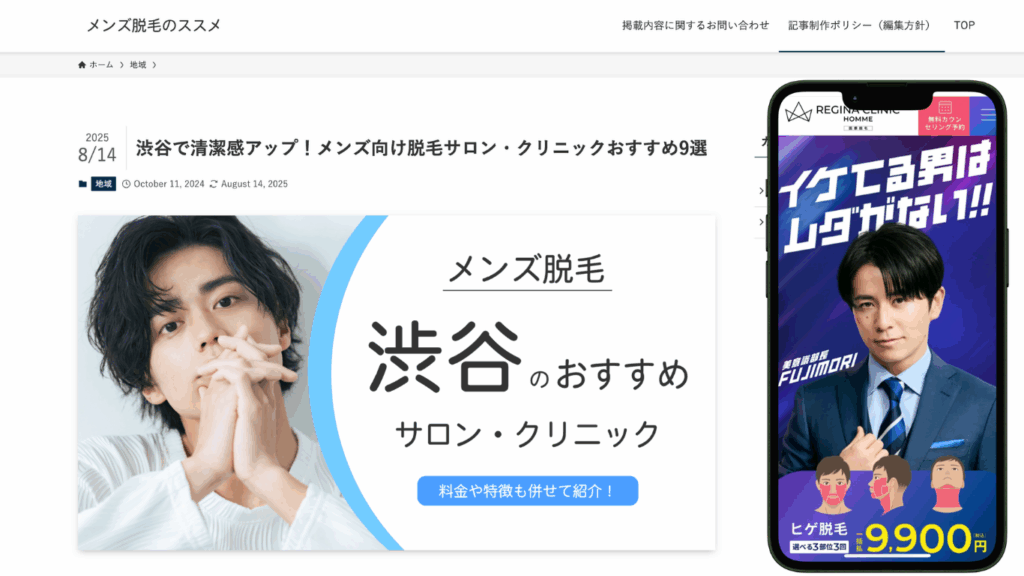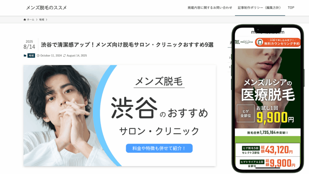 この記事では、渋谷エリアでおすすめのメンズ脱毛サロン・クリニックを9店舗ご紹介しました。