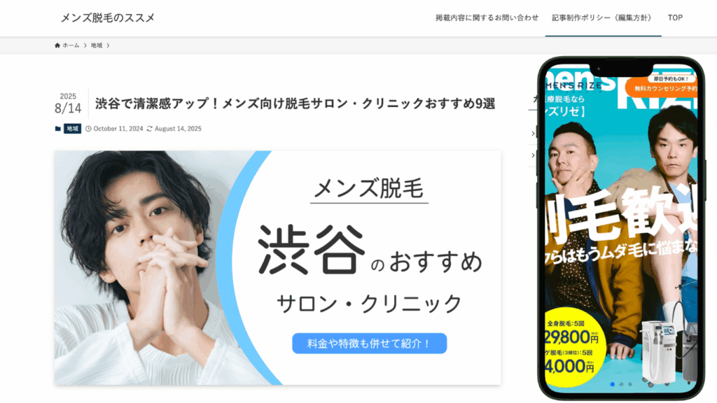 この記事では、渋谷駅周辺の通いやすさやコストパフォーマンスに優れたメンズ脱毛サロンやメンズ医療脱毛クリニックを9カ所厳選し、それぞれのメリットを解説しています。